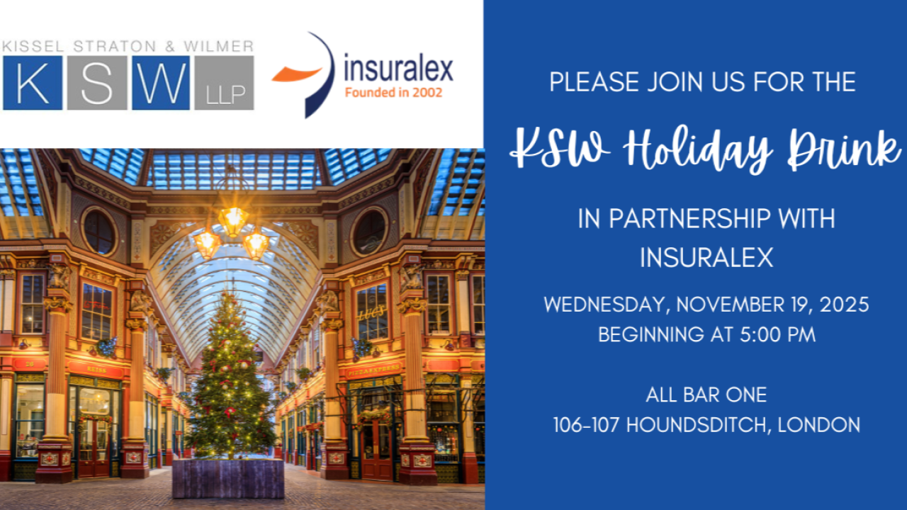 We are pleased to announce that our exclusive member in New York, USA, Kissel Straton & Wilmer LLP, will be hosting their annual Holiday Drink on November 19, 2025, in collaboration with Insuralex. |